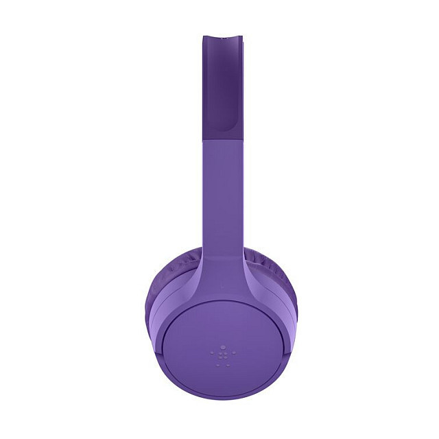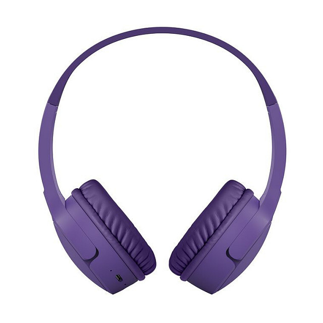 "Belkin SoundForm Mini. Product type: Headset. Connectivity technology: Wired & Wireless, Bluetooth. Recommended usage: Calls/Music, Product colour: Purple"\n"Perfect for distance learning, long car rides, and keeping them entertained, these on-ear headphones have been designed with kids 3 and up in mind. A volume cap of 85dB protects young ears, and extended battery life keeps them listening all day long.