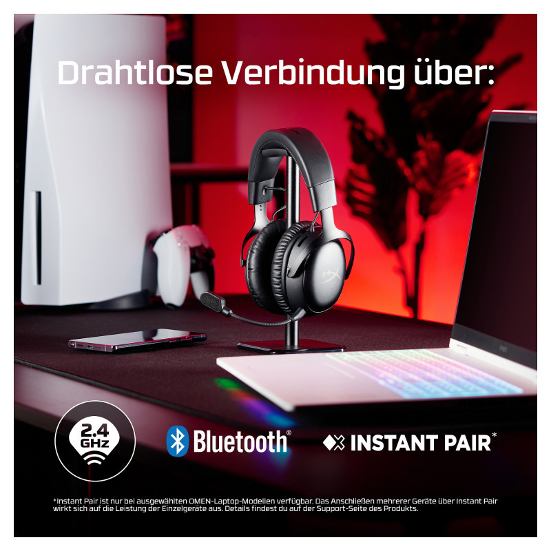 The Cloud III S Wireless represents the next evolution of Cloud III Wireless, retaining all the beloved features of its predecessor. In addition to the 2.4GHz wireless connectivity, users can connect to more devices via Bluetooth or an Instant Pair[2] mode that is compatible with select OMEN laptops. It also boasts extended battery life and multiple customization options. With HyperX signature comfort, this headset delivers luxurious comfort for all-day gaming or marathon streaming sessions. With up to 120 hours[1] of battery life, you can enjoy hours of uninterrupted gaming fun via 2.4GHz. Push the limits even further with up to 200 hours in Bluetooth mode. Equipped with 53mm angled drivers and a lifetime activation of DTS Headphone:X Spatial Audio[3], it delivers crystal-clear sound and enhanced audio positioning, precisely identifying critical audio cues like footsteps. The 10mm microphone provides clear communication with teammates, crisp call quality, and effortless conversations with friends. With easy-to-use audio controls, you can swiftly mute or unmute the microphone, adjust volume levels, and switch between wireless modes effortlessly. Whether you're gaming, listening to music, watching YouTube, browsing Twitch, or completing assignments, the Cloud III S Wireless ensures you never miss a beat or crucial shot!"