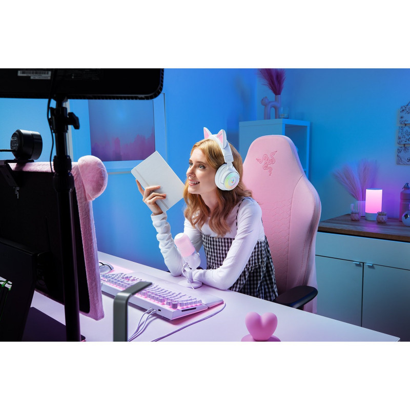 Make a statement with the Razer Kraken Kitty V3 Pro—a wireless gaming headset featuring the most iconic kitty ear design in gaming, illuminated by Razer Chroma™ RGB. With 3 versatile connectivity modes, a super wideband mic, and reactive lighting, be cute, comfortable, and competitive in style.