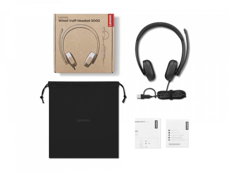 Lenovo Wired VoIP Headset 5000 (Teams) | Built-in microphone | USB Type-A, USB Type-C | Black