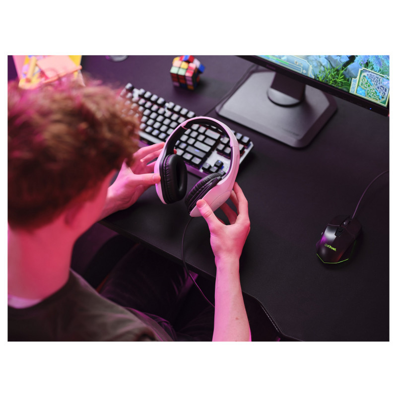 "Trust GXT 415W Zirox. Product type: Headset. Connectivity technology: Wired. Recommended usage: Gaming. Headphone frequency: 20 - 20000 Hz. Cable length: 2 m. Weight: 253 g. Product colour: White"\n"Lightweight over-ear gaming headset made for PC, laptop and consoles.
