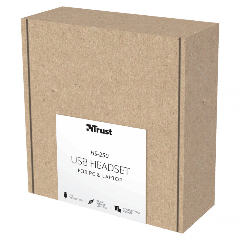 "Trust HS-250. Product type: Headset. Connectivity technology: Wired. Recommended usage: Calls/Music. Headphone frequency: 20 - 20000 Hz. Cable length: 2 m. Weight: 214 g. Product colour: Black"\n"Make the Call