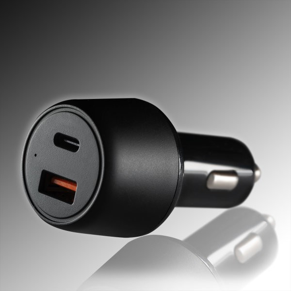 The USB car charger powers two mobile devices simultaneously via the car cigarette lighter. The extra-strong USB-C Power Delivery connection achieves a power of up to 65W. You can even charge your laptop in the car. The 18W USB-A Quick Charge port lets you charge a tablet, smartphone or other mobile device quickly and conveniently at the same time.