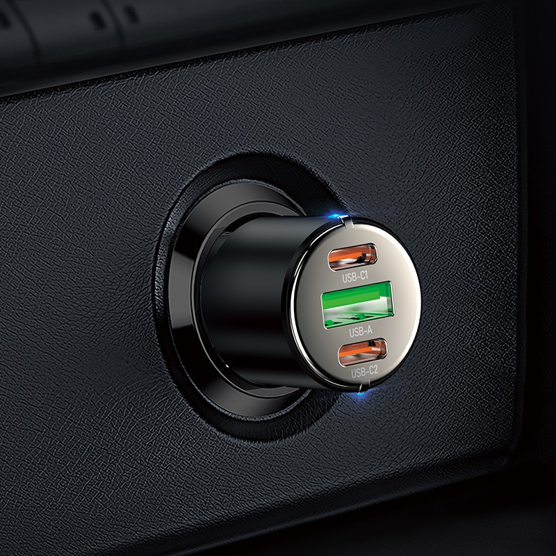 Automobilinis įkroviklis Hoco NZ6 PD45W 2xType-C/1xUSB-A juodas