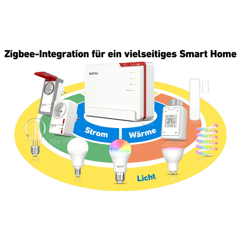 The FRITZ!Box 5690 Pro is the ideal hub for your smart home, offering practical automation for energy, heating, lighting and more. Control your Smart Home devices with schedules, scenes or routines. The FRITZ!Box supports Smart Home products via DECT. It also integrates smart home devices from other manufacturers, such as LED lights, via Zigbee. The FRITZ!App Smart Home is the ideal remote control for your FRITZ! Smart Home, both at home and on the go.