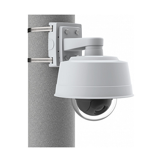 "Axis 01164-001. Type: Mount, Placement supported: Universal, Product colour: Grey, Metallic. Width: 111 mm, Depth: 42 mm, Height: 147 mm. Quantity per pack: 1 pc(s)"\n"AXIS T91B47 Pole Mount is designed for both indoor and outdoor use. It is available in two versions with different lengths of marine-grade (SS316L) stainless steel straps. One version for poles with diameter between 50–150 mm (2–6 in), and one for poles with diameter between 100-410 mm (4–16 in) in diameter. Additionally, it can be used for attaching cameras to beams. When AXIS T91B47 is used for Axis fixed dome or fixed bullet cameras, no additional accessories such as pendant kits are required, ensuring a cost-efficient solution."