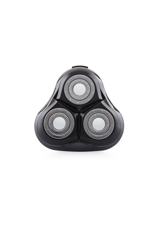 Rotary triple-head shaving system that adapts to facial contours; Detachable trimming head with stainless steel blades; Suitable for trimming beards, hair, and unwanted hairs in ears, nose, and eyebrows; Highly visible LED display with battery status, full charge indicator, charging status, and control lock |