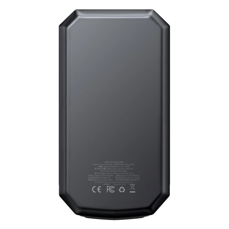 Baseus Power Starter Jump Starter - paleidimo įrenginys, stiprintuvas 20000 mAh 12 V (2000 A / 1000 A) + krokodilo spaustukai (juodi)
