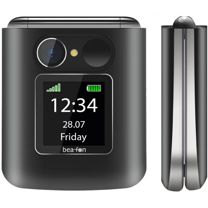 "Beafon Fold 10 LTE. Form factor: Clamshell. SIM card capability: Single SIM. Display diagonal: 5.59 cm (2.2""), Display resolution: 177 x 220 pixels, External display. Bluetooth. FM radio. Battery technology: Lithium-Ion (Li-Ion), Battery capacity: 1000 mAh, Standby time (2G): 250 h. Weight: 95 g. Product colour: Black, Silver"\n