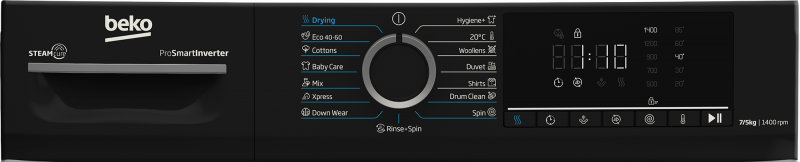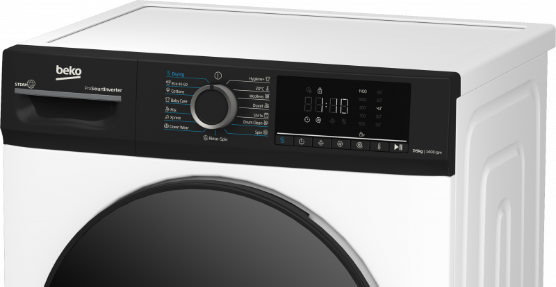 BEKO Washing machine with dryer | BMM5DFO5741WPB | Energy efficiency class A/D | Front loading | Washing capacity 7 kg | 1400 RPM | Depth 52 cm | Width 60 cm | Display | LED | Drying system | Drying capacity 5 kg | Steam function | White