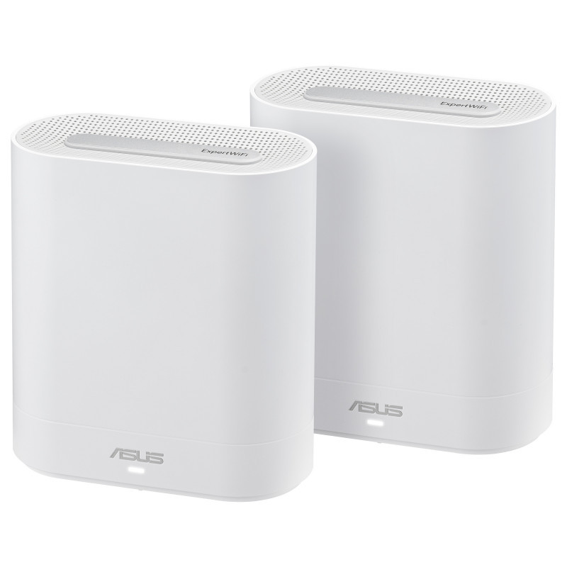 "ASUS EBM68(2PK) – Expert Wifi. Product colour: White, Antenna type: Internal, Product type: Mesh router. Wi-Fi band: Tri-band (2.4 GHz / 5 GHz / 5 GHz), Top Wi-Fi standard: Wi-Fi 6 (802.11ax), WLAN data transfer rate (max): 4804 Mbit/s. Processor frequency: 1.7 GHz, Internal memory: 1000 MB, Flash memory: 256 MB. AC input voltage: 110 - 240 V, AC input frequency: 50 - 60 Hz, AC adapter output voltage: 12 V. Width: 167 mm, Depth: 77 mm, Height: 186 mm"\n"Your Business WiFi Expert Within Reach