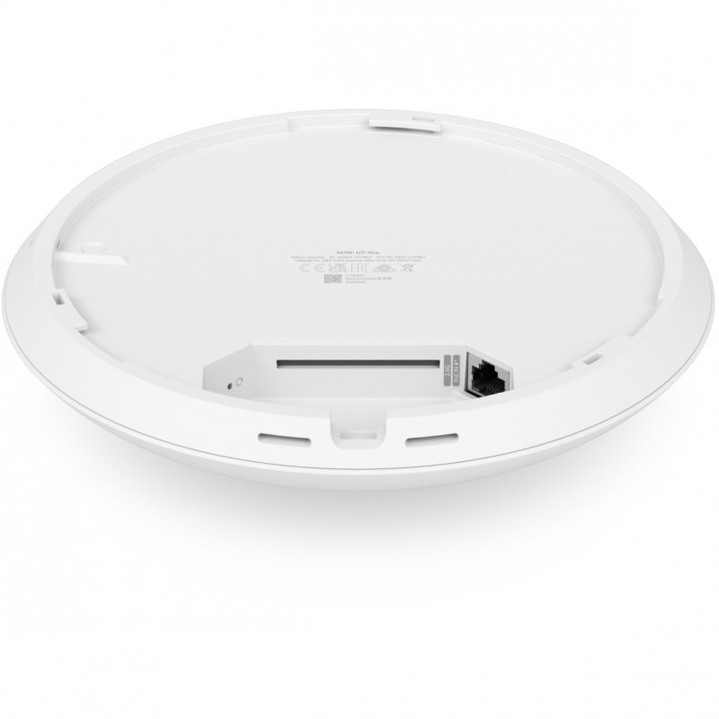 "Ubiquiti U7 Pro. 2.4 GHz, 5 GHz, 6 GHz, Maximum data transfer rate: 5700 Mbit/s. Security algorithms: PPSK, WPA, WPA-Enterprise, WPA-PSK, WPA2, WPA3. Ethernet LAN data rates: 1000,2500 Mbit/s. Product colour: White. Power consumption (max): 21 W"\n"Ceiling-mounted WiFi 7 AP with 6 spatial streams and 6 GHz support for interference-free WiFi in demanding, large-scale environments."