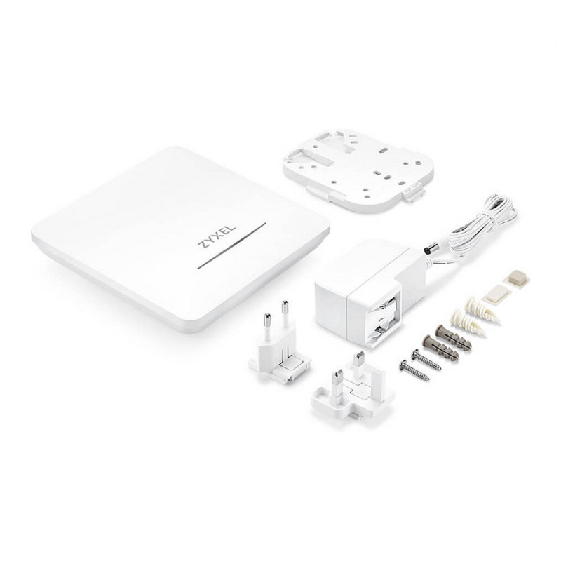 "Zyxel NWA50BE PRO. 2.4 GHz, 5 GHz, 6 GHz, Maximum data transfer rate: 5764 Mbit/s. Security algorithms: WPA, WPA2, WPA3. Ethernet LAN data rates: 1000,2500 Mbit/s. Power over Ethernet (PoE). Product colour: White"\n"Powerful. Secure. Wireless.
