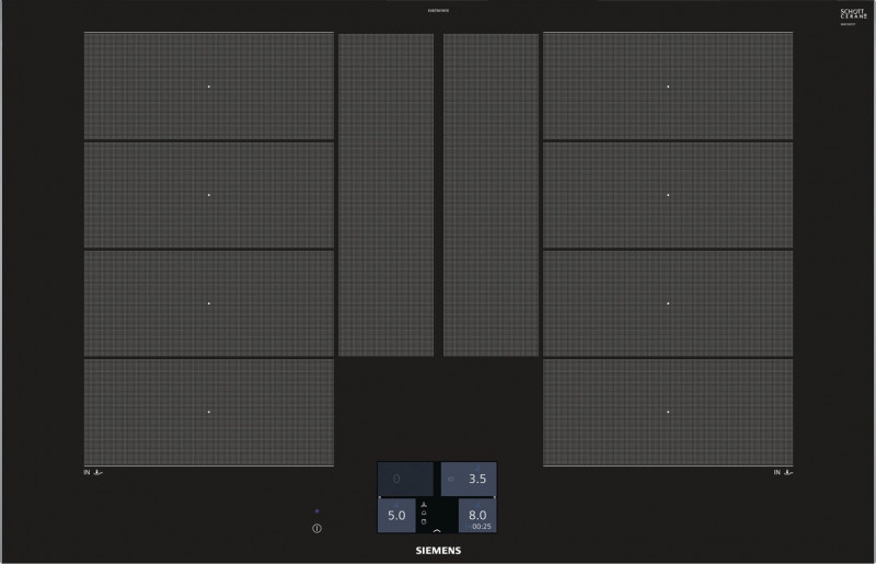 Indukcinė viryklė, padalyta į sritis |