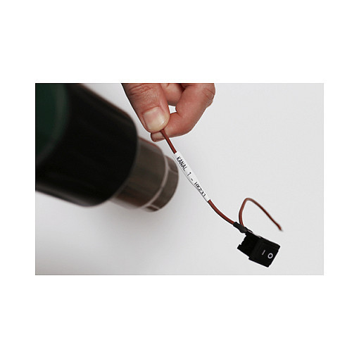 When the printed tube is placed over a cable and heated with a heat gun, the tube shrinks down, gripping the cable tightly. No adhesive is needed, ensuring that even in warm environments the heat shrink tube will not unpeel from the cable.