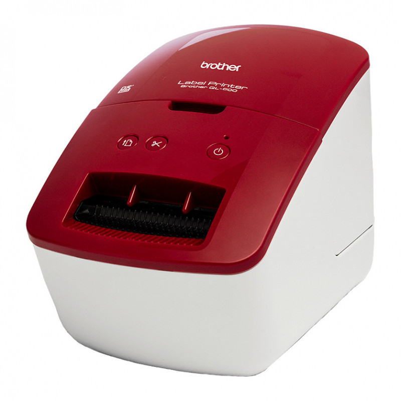"Brother QL-600RXX1. Print technology: Direct thermal, Maximum resolution: 300 x 600 DPI, Print speed: 71 mm/sec. Connectivity technology: Wired, USB port. Tape type: DK. Product colour: Red, White"\n"The smart, compact design of the QL-600R address label printer allows it to sit neatly on your desk, connected to your PC or Mac's USB interface. Using P-touch Editor label design software (available as a free download) you can add text, images, barcodes, frames and other items onto your labels before printing. Use the integrated cutter together with one of the continuous DK label rolls to create labels up to one metre in length - ideal for signs and banners. Or add to this a large range of various pre-sized die-cut label rolls, and you have the ideal postage/shipping label printer that can do so much more!"
