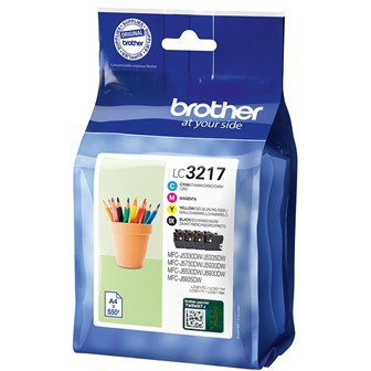 "Brother LC-3217. Supply type: Multi pack, Colour ink page yield: 550 pages, Printing colours: Black, Cyan, Magenta, Yellow"\n