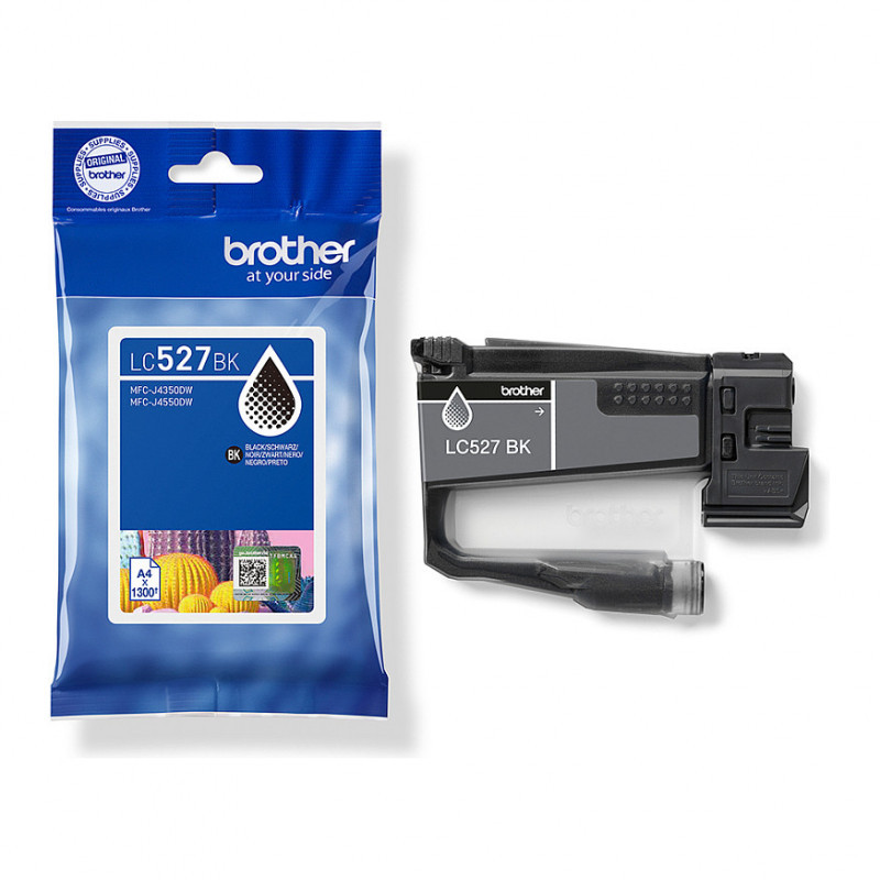 "Brother Genuine LC527BK Ink Cartridge - Black. Black ink type: Pigment-based ink, Supply type: Single pack, Printing colours: Black, Quantity per pack: 1 pc(s), Black ink page yield: 1300 pages"\n"High quality supplies are essential for achieving outstanding print results. The Brother LC527BK black premium pigment ink cartridge is formulated to deliver exceptional sharp text quality when printing documents.