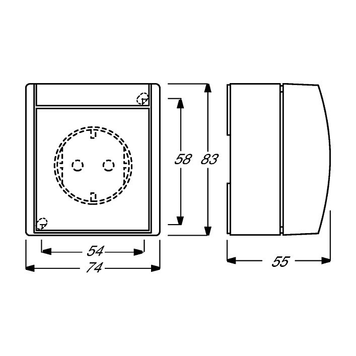 "Busch-Jaeger 2083-0-0817. Socket type: CEE 7/3. Product colour: Blue, White, International Protection (IP) code: IP44. Rated voltage: 250 V, Rated current: 16 A. Width: 74 mm, Depth: 55 mm, Height: 83 mm"\n