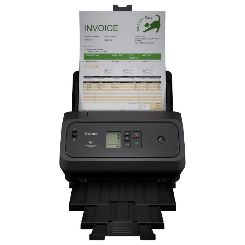 "Canon imageFORMULA DR-C350 A4 Desktop Scanner. Maximum scan size: 216 x 356 mm, Optical scanning resolution: 600 x 600 DPI. Scanner type: ADF scanner, Product colour: Black. Sensor type: CMOS CIS, Daily duty cycle (max): 7000 pages. Maximum ISO A-series paper size: A4. Power supply type: USB, Power supply: 15.6 W"\n