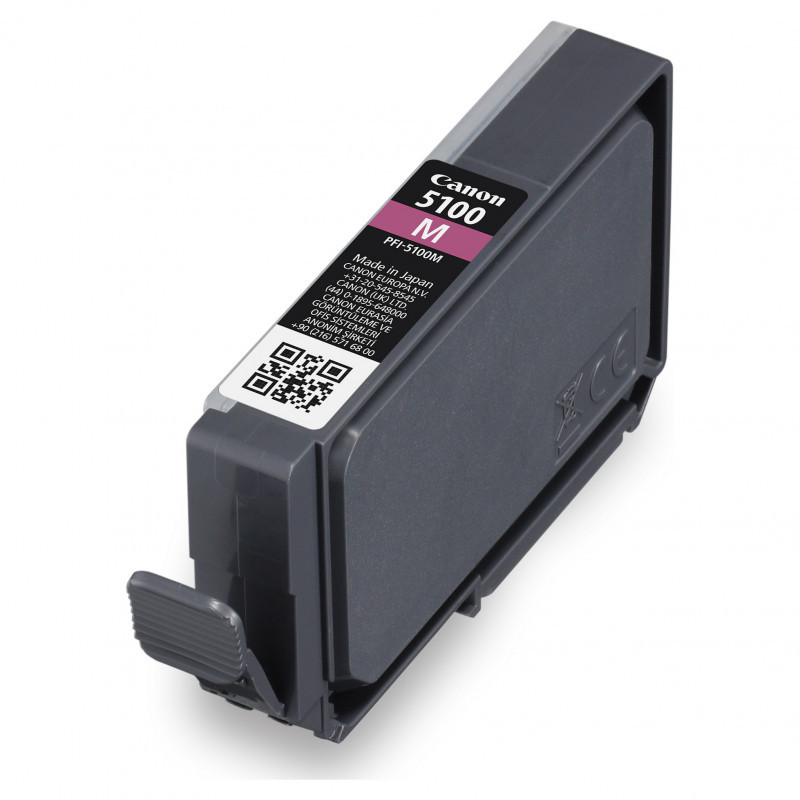 "Canon PFI-5100 M. Supply type: Single pack, Colour ink volume: 14.4 ml, Printing colours: Magenta, Quantity per pack: 1 pc(s)"\n"The LUCIA PRO II ink system provides a broad color gamut and improved gloss uniformity for superb glossiness and anti-bronzing. It helps you achieve an improvement in color-reproduction, image clarity, and enhanced darker areas. It faithfully reproduces colors and dark areas crucial for printing works of art. Ink can be placed more densely, bringing higher color gamut by increasing the number of color droplets on the paper. The Chroma Optimizer ink enhances glossiness, flattens the print surface and expands color range."