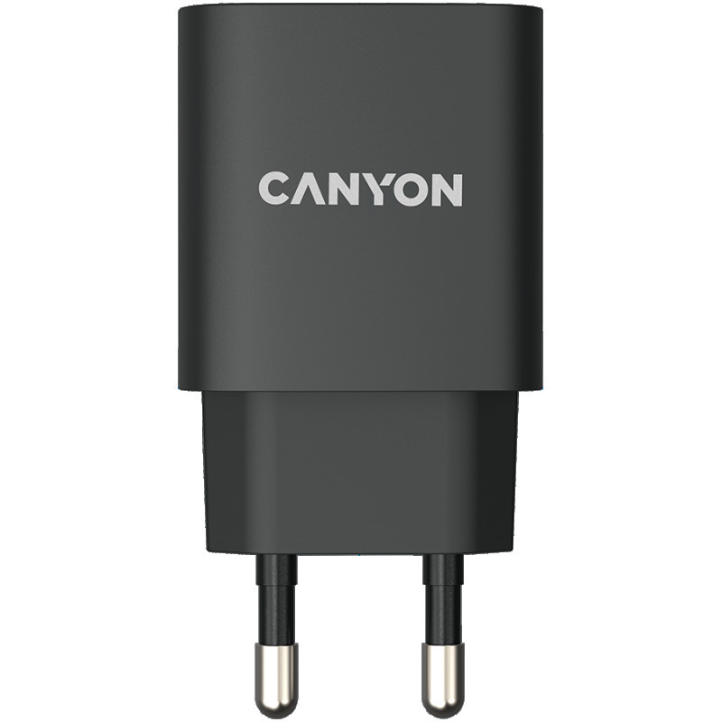CANYON H-20, PD 20W Input: 100V-240V, Output: 1 port charge: USB-C:PD 20W (5V3A/9V2.22A/12V1.67A) , Eu plug, Over- Voltage , over-heated, over-current and short circuit protection Compliant with CE RoHs,ERP. Size: 80*42.3*30mm, 55g, Black