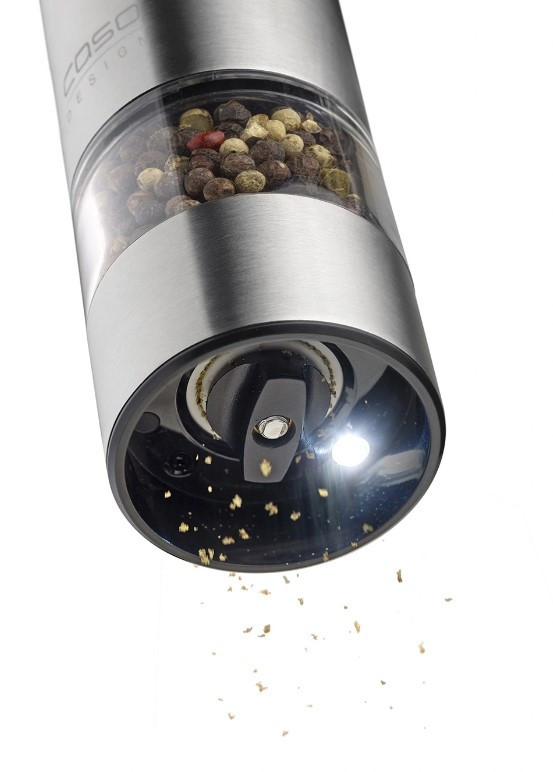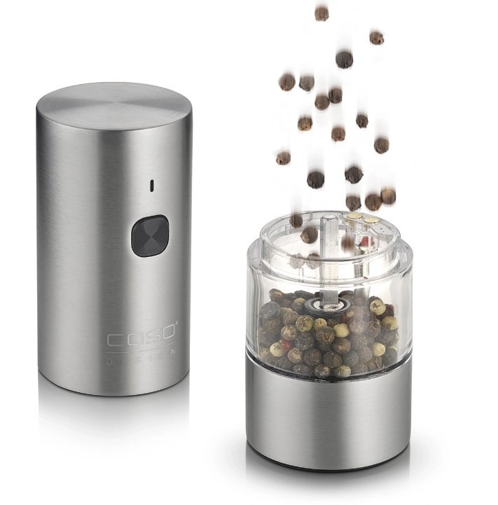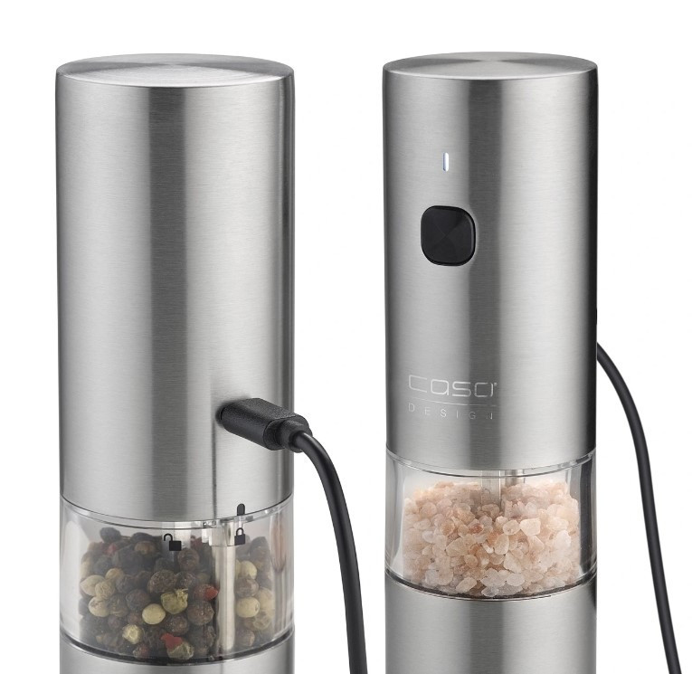 Caso SpiceDuo elektrinis druskos ir pipirų malūnėlis – tai elegantiškas ir funkcionalus prietaisas, leidžiantis lengvai sumalti prieskonius vienu mygtuko paspaudimu. Dėl nerūdijančiojo plieno korpuso ir modernios dvigubos konstrukcijos jis tinka tiek druskai, tiek pipirams, užtikrindamas ilgalaikį naudojimą ir stilingą išvaizdą. Integruotas įkraunamas ličio akumuliatorius užtikrina patogų veikimą be baterijų keitimo.