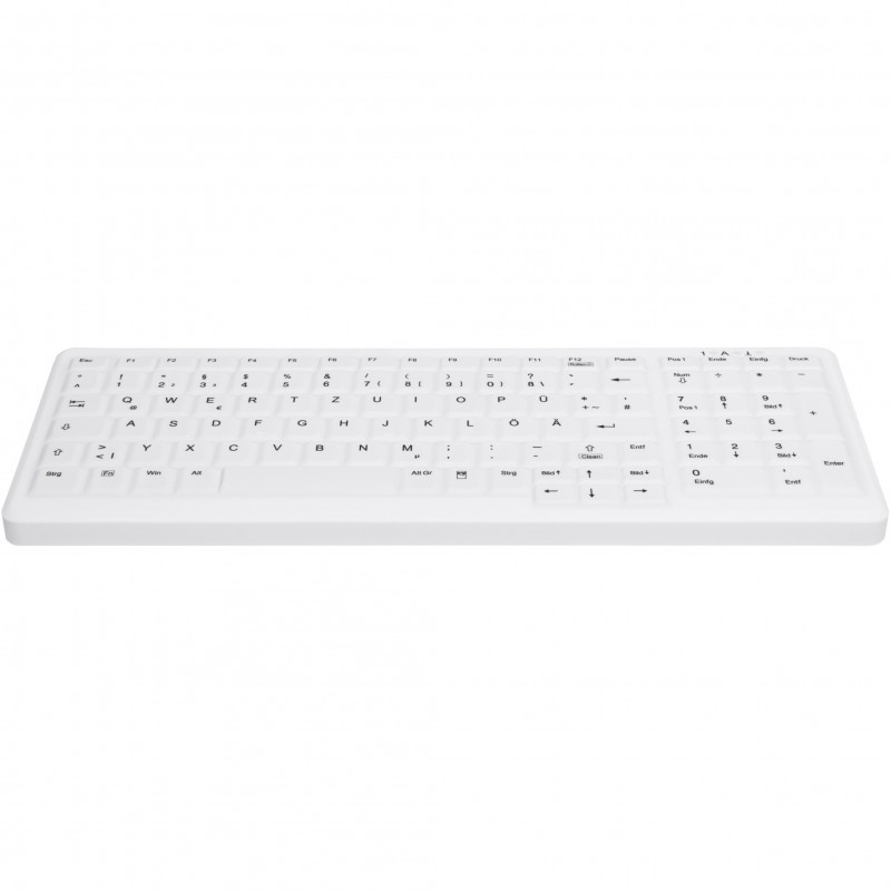 "Contour Design Active Key Contour ClassicClean Medical Keyboard IP68 Compact Wired White DE C7000. Keyboard style: Straight. Connectivity technology: Wired, Device interface: USB, Keyboard key switch: Scissor key switch, Keyboard layout: QWERTZ. Backlight type: LED. Recommended usage: Medical. Product colour: White"\n"The AK-C7000 is a high quality, high performance, and highly reliable PC-keyboard. The purification and disinfection capacity makes it a perfect fit in hospitals, at practitioners and in microbiological laboratories. The silicone membrane protects keyboard and key field against ingress of dirt and fluids.