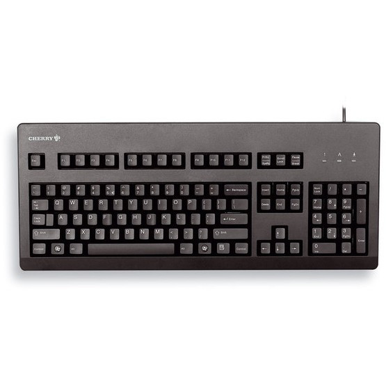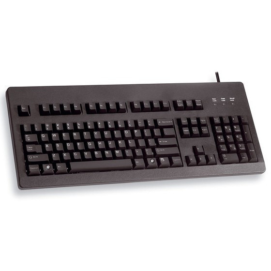 "CHERRY G80-3000. Keyboard form factor: Full-size (100%). Keyboard style: Straight. Connectivity technology: Wired, Device interface: USB, Keyboard number of keys: 104. Cable length: 1.75 m. Product colour: Black"\n"- Individual keys with Gold Crosspoint contacts (MX technology)