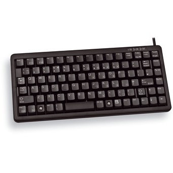 "CHERRY G84-4100. Keyboard form factor: Mini. Keyboard style: Straight. Connectivity technology: Wired, Device interface: USB, Keyboard layout: AZERTY, Keyboard number of keys: 86. Cable length: 1.75 m. Recommended usage: Universal. Product colour: Black"\n"- Individual keys with Gold Crosspoint contacts (ML technology)