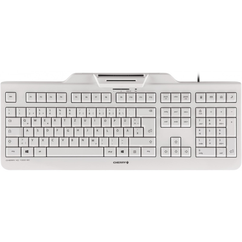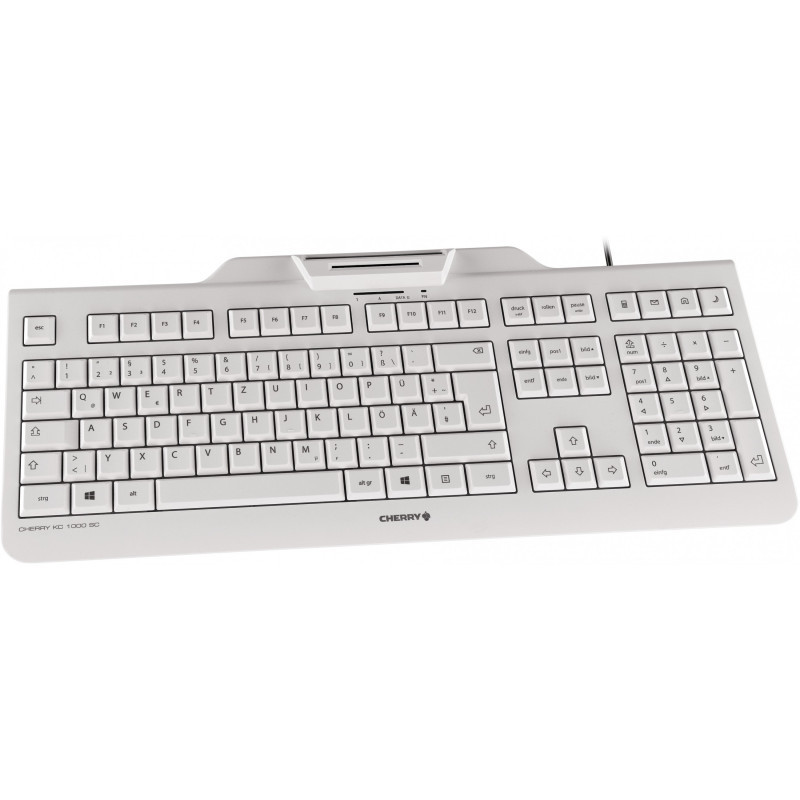 "CHERRY KC 1000 SC. Keyboard form factor: Full-size (100%). Keyboard style: Straight. Connectivity technology: Wired, Device interface: USB, Keyboard layout: QWERTY. Cable length: 1.8 m. Recommended usage: Office. Product colour: Black"\n"Lasting reliability. Timeless elegance. Intelligent concept. CHERRY KC 1000 SC combines the benefits of a classic CHERRY office keyboard with the security-related requirements of a security keyboard.