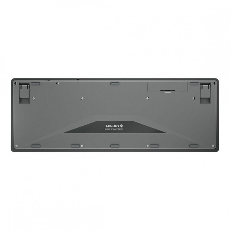 "Contour Design STREAM PROTECT WIRELESS. Keyboard form factor: Full-size (100%). Keyboard style: Straight. Connectivity technology: Wireless, Device interface: RF Wireless, Keyboard key switch: Scissor key switch, Keyboard layout: QWERTY, Recommended usage: Universal. Product colour: Black"\n"Together, the CHERRY STREAM KEYBOARD WIRELESS and the CHERRY STREAM PROTECT MEMBRANE become the CHERRY STREAM PROTECT KEYBOARD WIRELESS. This means the keyboard offers the ability to be completely wiped clean or even disinfected, but remains very comfortable to type on. With frequent and changing use, keyboards can be a reservoir for dirt and germs. On the CHERRY STREAM PROTECT KEYBOARD, dirt and microorganisms such as bacteria and viruses can be simply wiped off the flat and completely enclosed key surface. The key membrane can be taken off the keyboard for washing and changing. The STREAM PROTECT MEMBRANE thus effectively protects people, the keyboard and the environment. The STREAM PROTECT KEYBOARD WIRELESS follows the design, elegance and sleekness of the CHERRY STREAM product line with the same slim design, high torsional rigidity and stability. Rubber pads and fold-out feet provide the usual firm footing. Sturdy scissor technology and the highly developed haptics of the key membrane ensure the legendary typing comfort of the CHERRY STREAM keyboards. The 2.4 GHz wireless connection with up to 10 meters range is as reliable and uncomplicated as ever. The keyboard can be plug-and-play-connected to the PC via the receiver. The wireless connection has AES-128 data encryption. A low battery is indicated by the status LEDs integrated in the keys. The STREAM PROTECT MEMBRANE provides hygienic protection wherever a CHERRY STREAM keyboard is already in use, for example in public administration, educational institutions, schools and universities or in shared office environments.