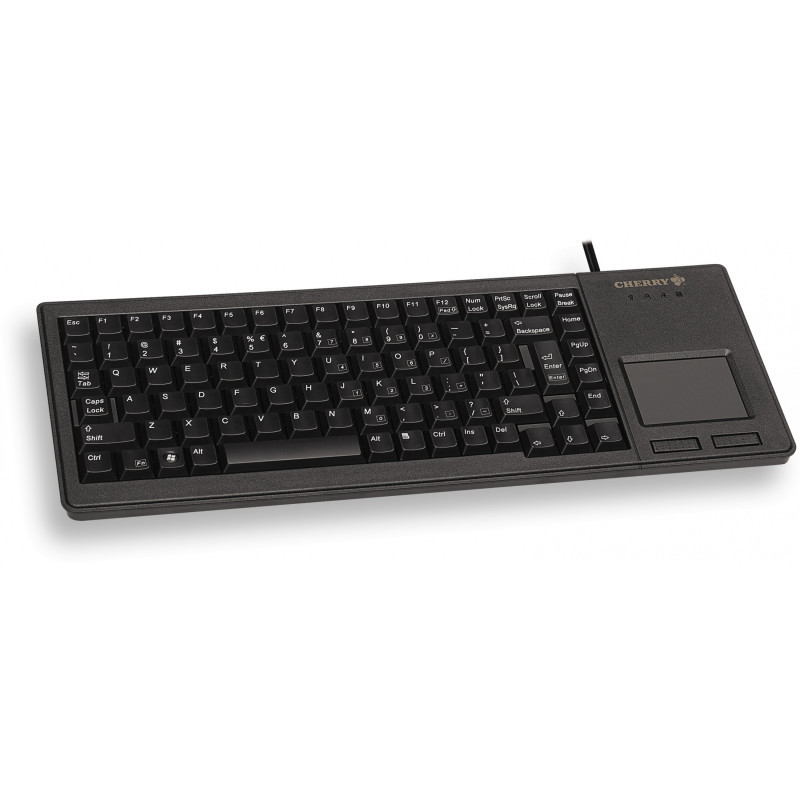 "CHERRY XS Touchpad G84-5500. Keyboard form factor: Full-size (100%). Keyboard style: Straight. Connectivity technology: Wired, Device interface: USB, Keyboard key switch: Mechanical, Keyboard layout: QWERTY, Keyboard number of keys: 89. Cable length: 2.5 m. Recommended usage: Office. Product colour: Black"\n"The ""XS Touchpad Keyboard"" (G84-5500) combines comfortable mouse control with compact dimensions. The mouse can be controlled easily and precisely via the large touchpad with two mouse keys."