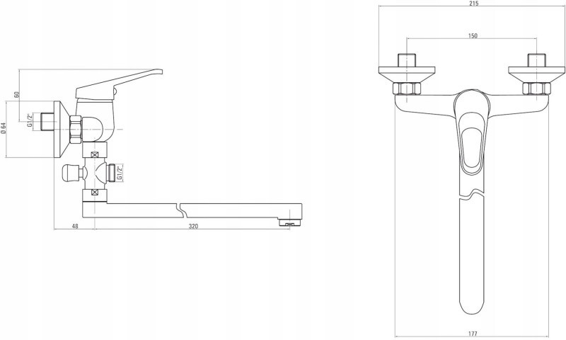 Praustuvo maišytuvas DEANTE Neo Lobo (BYU056M) ant sienos montuojamas Chromas