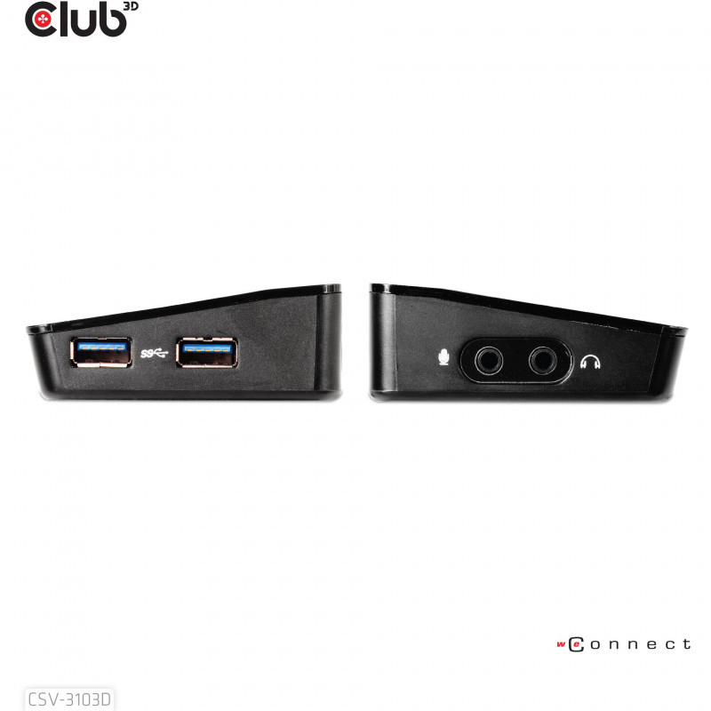 "CLUB3D CSV-3103D The Club 3D Universal USB 3.1 Gen 1 UHD 4K Docking station DisplayLink™. Connectivity technology: Wired, Host interface: USB 3.2 Gen 1 (3.1 Gen 1) Type-A, HDMI version: 1.4a. Ethernet LAN data rates: 10,100,1000 Mbit/s. Product colour: Black, Maximum digital resolution: 3840 x 2160 pixels, Maximum analog resolution: 2048 x 1152 pixels. Power source type: AC. Windows operating systems supported: Windows 10 Education, Windows 10 Education x64, Windows 10 Enterprise, Windows 10 Enterprise x64,..."\n"SenseVision USB 3.0 4K Docking Station