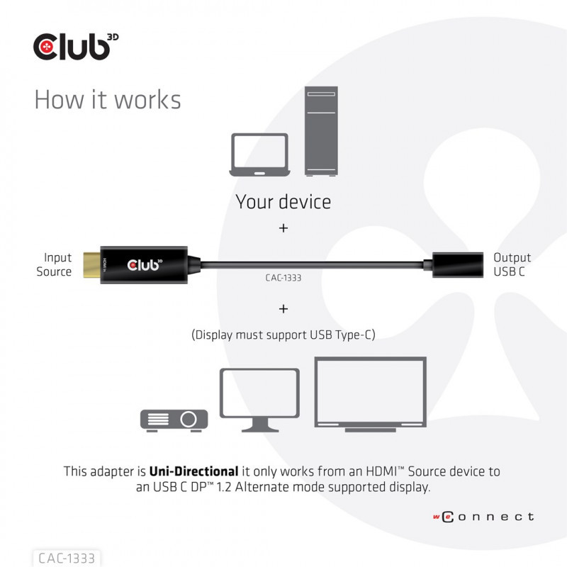 CLUB3D CAC-1333 vaizdo kabelio adapteris 0,22 m HDMI A tipo (standartinis) C tipo USB Juoda