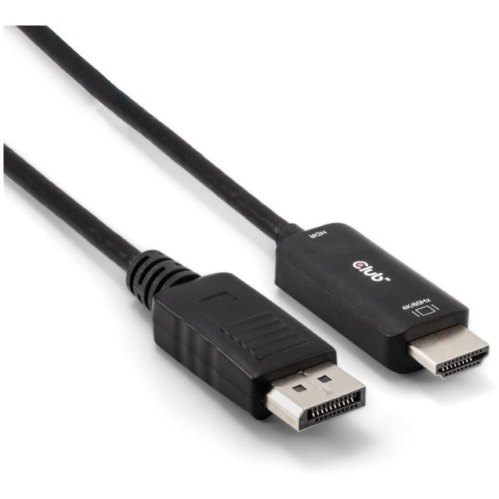 "CLUB3D CAC-1083. Cable length: 2 m, Connector 1: HDMI Type D (Micro), Connector 1 gender: Male. Compliance certificates: CE, Federal Communications Commission (FCC), RoHS. Weight: 68 g. Package type: Hanging box, Package weight: 114 g. Quantity per pack: 1 pc(s)"\n"The Club 3D CAC-1083 is a DisplayPort™ 1.4 to HDMI™ 4K60Hz Cable with HDR M/M 2m / 6.56ft converter. It features support for HDR Video quality deep color media content playback. The DisplayPort™ receiver supports up to 5,4 Gbps per lane over 4 lanes. The HDMI™ output is fully compliant to HDMI™ specification.