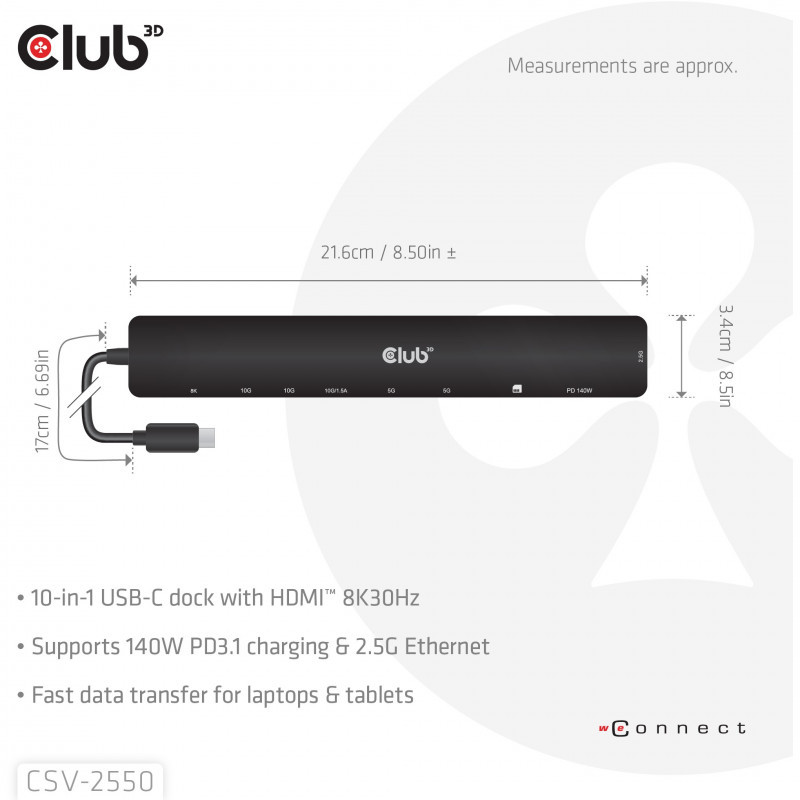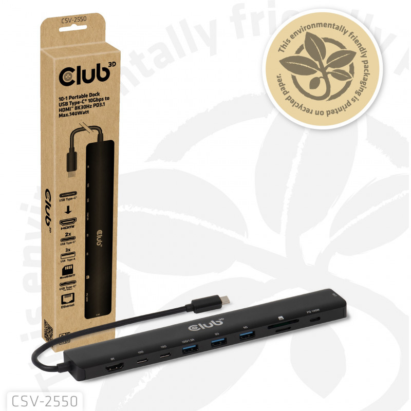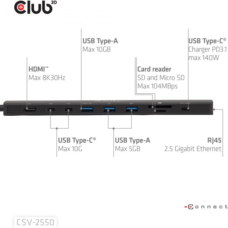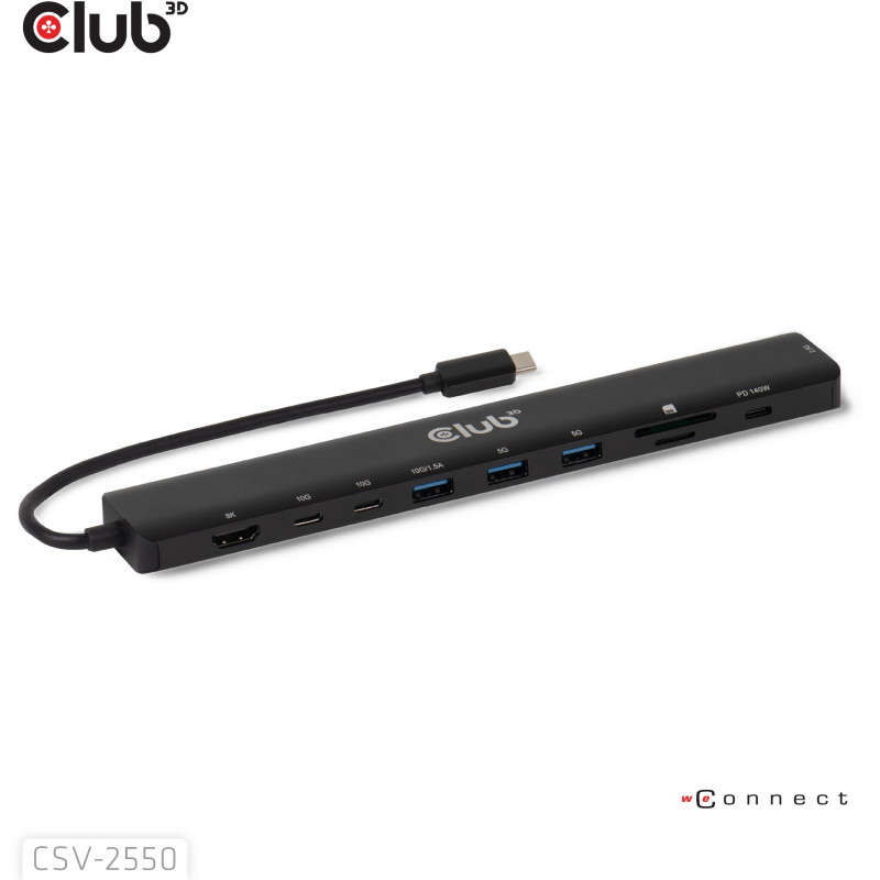 Club3D USB-C 10in1-HUB >HDMI/3xUSB-C/3xUSB/LAN 8K30Hz PD140W