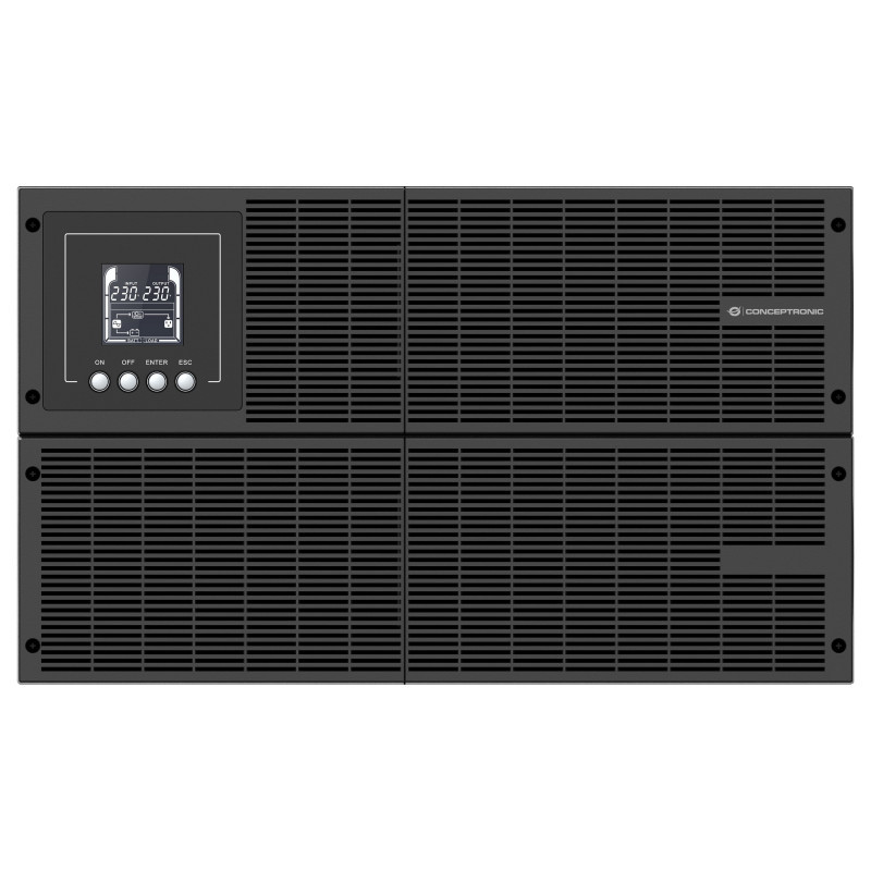 "Conceptronic ZEUS51E6K 6000VA 6000W Online Rack/Tower UPS. UPS topology: Double-conversion (Online), Output power capacity: 6 kVA, Output power: 6000 W. USB port type: USB Type-B, Serial interface type: RS-232. Battery capacity: 7 Ah, Battery voltage: 192 V, Battery recharge time: 4 h. Form factor: Rackmount/Tower, Product colour: Black, Display type: LCD. Compliance certificates: CE, RoHS"\n"The Conceptronic Online Rack/Tower UPS is the ultimate solution for dependable battery backup in both home and office settings. With an output power factor of 1.0, this UPS delivers maximum efficiency and performance. Its ECO mode feature conserves energy, making it an environmentally friendly choice. Designed for generator compatibility, it provides continuous power even during extended outages.