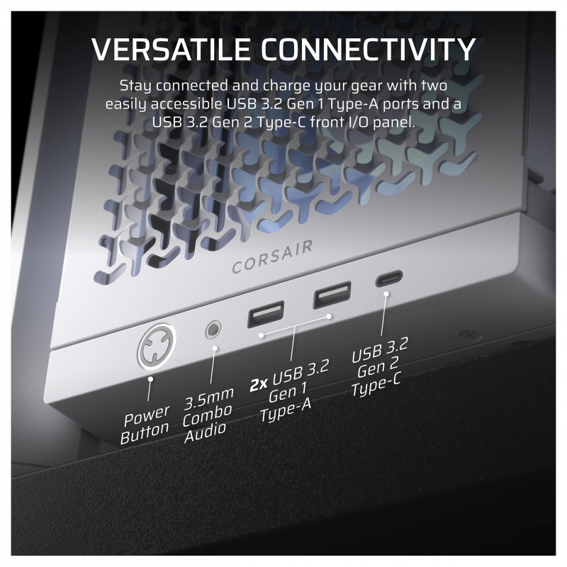 Puts your connections within easy reach, including a USB 3.2 Gen 2 Type-C Port, 2x USB 3.2 Gen 1 Type-A ports, and a combination audio/microphone jack."