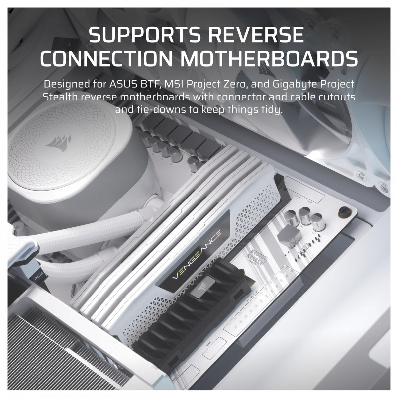 Fully compatible with reverse-connector motherboards from Asus, MSI, and Gigabyte, allowing for unobstructed airflow and a super-clean build.