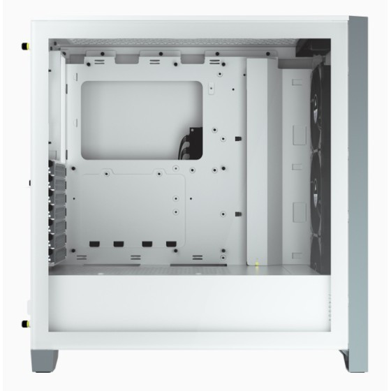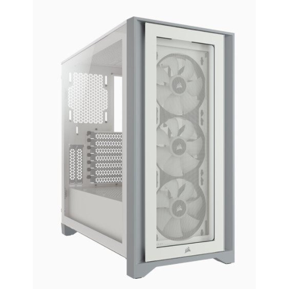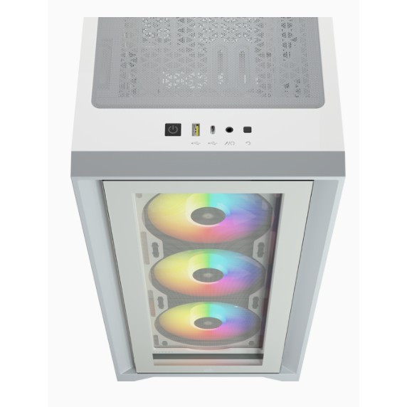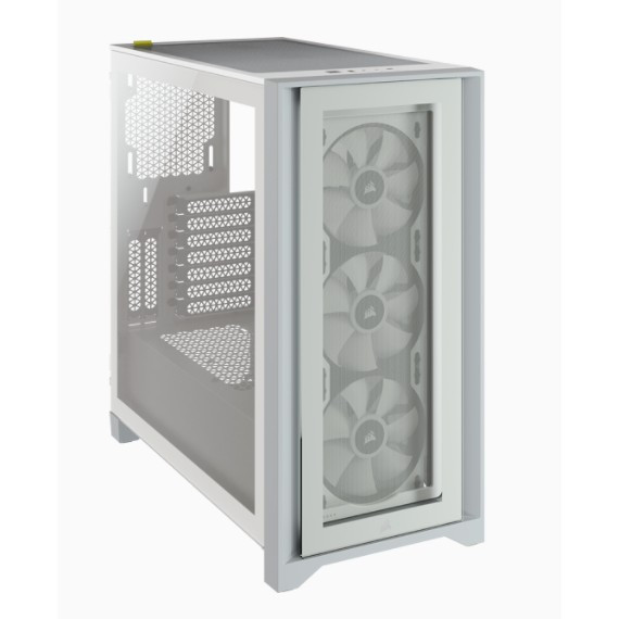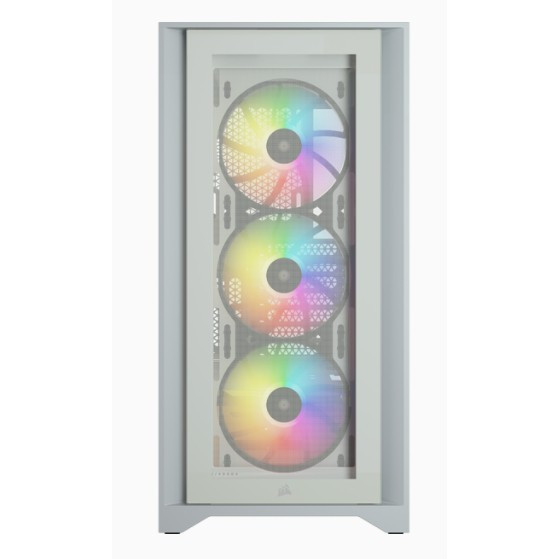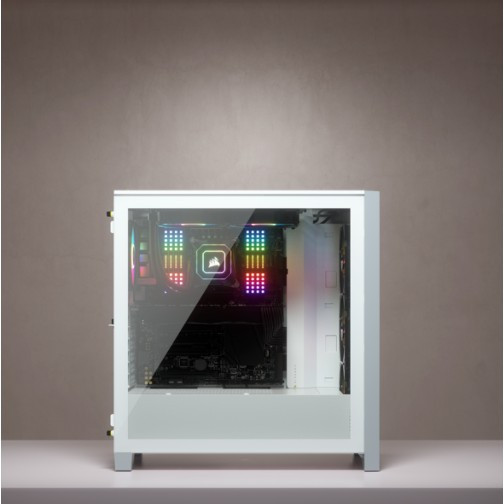 "Corsair iCUE 4000X RGB. Form factor: Midi Tower, Type: PC, Product colour: White. Power supply location: Bottom. Front fans installed: 3x 120 mm, Front fans diameters supported: 120,140 mm, Rear fans diameters supported: 120 mm. Supported HDD sizes: 3.5"", SSD form factor: 2.5"". Width: 230 mm, Depth: 453 mm, Height: 466 mm"\n"The CORSAIR iCUE 4000X RGB is a distinctive and customizable tempered glass mid-tower ATX case with easy cable management and exceptional cooling, with three included CORSAIR AirGuide RGB fans.