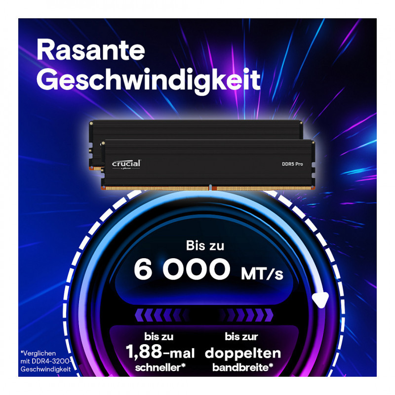 With 2x the bandwidth of the previous generation, Crucial DDR5 Pro enables next-level multitasking and faster processing so you can tackle even heavy workloads in less time.