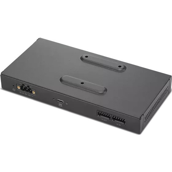 "Lenovo 4XH1C95567. Connectivity technology: Wired, Host interface: USB 3.2 Gen 1 (3.1 Gen 1) Type-C. Networking standards: IEEE 802.3, IEEE 802.3ab, IEEE 802.3af, IEEE 802.3at, IEEE 802.3u. Product colour: Black, LED indicators: Power, Brand compatibility: Lenovo. Windows operating systems supported: Windows 10 x64. Width: 178 mm, Depth: 88 mm, Height: 25.6 mm"\n"The ThinkEdge SE30 IOBOX connects to ThinkEdge SE30 via a Type-C connection, providing extra vertical IO offerings such as Power over Ethernet (PoE), Digital Input/Output, and a Serial port (RS232/422/485) offering flexibility and adaptability during Retail, Manufacturing, and Smart Building system integration. One DC cable provides voltage input to the IOBOX and PC device simultaneously, saving customers the extra burden of an AC/DC power transfer in industrial DC power supply environments."
