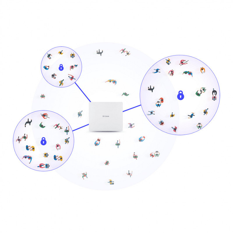 "D-Link AX3000 Wi-Fi 6 Dual-Band PoE Outdoor Access Point. 2.4 GHz, 5 GHz, Maximum data transfer rate: 3000 Mbit/s. Security algorithms: 64-bit WEP, 128-bit WEP, SSID, WEP, WPA, WPA2, WPA3. Ethernet LAN data rates: 10,100,1000,2500 Mbit/s. Power over Ethernet (PoE). Product colour: White. Power consumption (max): 16.7 W"\n"Nuclias Connect AX3000