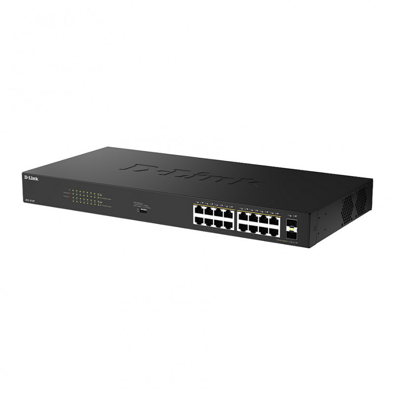 "D-Link 18-Port Gigabit Unmanaged PoE Switch. Switch type: Unmanaged. Basic switching RJ-45 Ethernet ports type: Gigabit Ethernet (10/100/1000), Basic switching RJ-45 Ethernet ports quantity: 16. Switching capacity: 36 Gbit/s. Networking standards: IEEE 802.3, IEEE 802.3af, IEEE 802.3at, IEEE 802.3u, IEEE 802.3x. Power connector: AC-in jack. Power over Ethernet (PoE)"\n