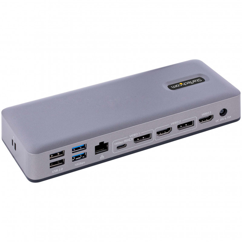 "StarTech.com DK31C3MNCRUE. Connectivity technology: Wired, Host interface: USB 3.2 Gen 2 (3.1 Gen 2) Type-C, USB Power Delivery up to: 60 W. Ethernet LAN data rates: 10,100,1000 Mbit/s. Data transfer rate: 10 Gbit/s, HD type: 5K Ultra HD, Maximum digital resolution: 5120 x 2880 pixels. AC input voltage: 100 - 240 V, Input current: 2.37 A, Output voltage: 20 V. Width: 80 mm, Depth: 210 mm, Height: 32 mm"\n"USB-C Docking Station | Triple/Dual 4K | 7x USB Hub | 60W USB Power Delivery | GbE