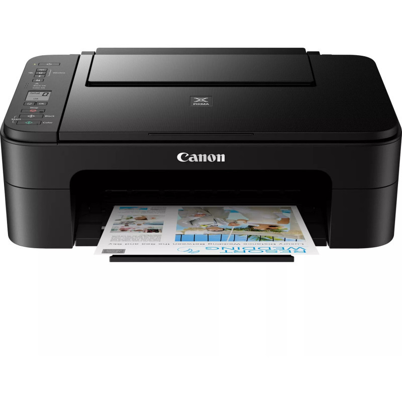 "Canon PIXMA TS3350. Print technology: Inkjet, Printing: Colour printing, Maximum resolution: 4800 x 1200 DPI. Copying: Colour copying. Scanning: Colour scanning, Optical scanning resolution: 600 x 1200 DPI. Maximum ISO A-series paper size: A4. Wi-Fi. Product colour: Black"\n"Affordable, stylish and functional, this connected all-in-one is the go-to tool for crisp documents and borderless photos up to 5”x7"".