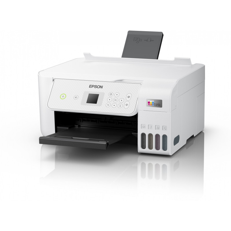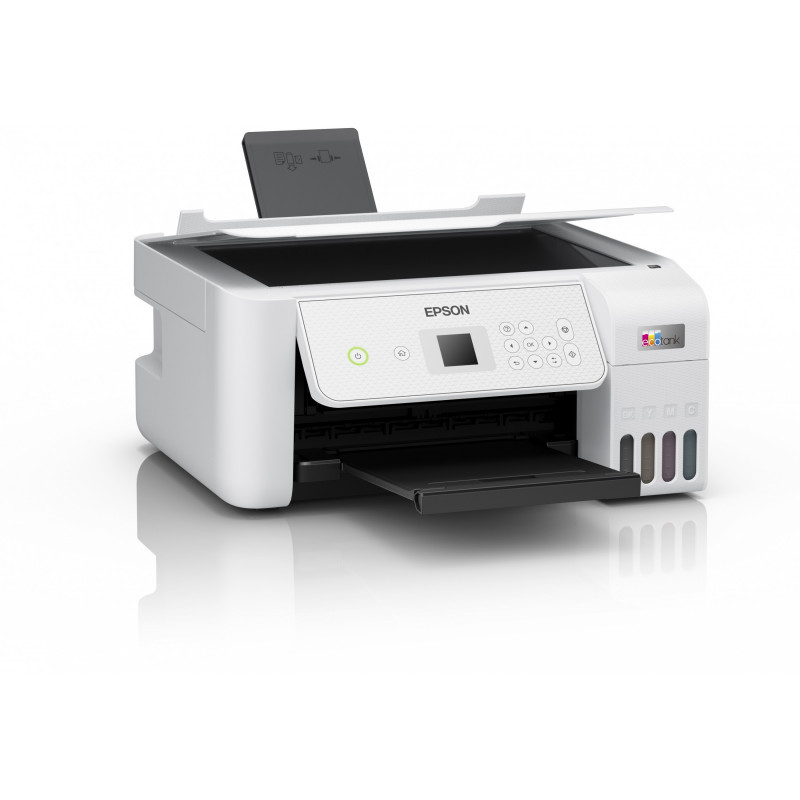"Epson EcoTank ET-2876. Print technology: Inkjet, Printing: Colour printing, Maximum resolution: 5760 x 1440 DPI. Scanning: Colour scanning, Optical scanning resolution: 1200 x 2400 DPI. Duplex functions: Print. Maximum ISO A-series paper size: A4. Wi-Fi. Direct printing. Product colour: White"\n"Perfect for modern, busy households this A4 inkjet printer with easy-to-use LCD screen has refillable ink tanks, with one set of bottles having the equivalent of up to 72 cartridges* for ultra-low cost per page printing. Additional benefits include mobile printing, Wi-Fi, copy and scan.