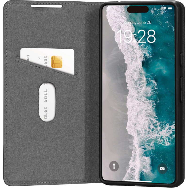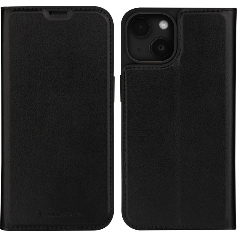 "dbramante1928 Oslo - iPhone 16e/15/14/13 - Black. Case type: Folio, Brand compatibility: Apple, Compatibility: iPhone 15, Surface coloration: Monochromatic, Product colour: Black, Number of card pockets: 1"\n"Oslo is an impact protective folio wallet case made from recycled plastic that looks and feels just like real leather. Unlike many other alternatives, this case is made with recycled plastic materials and is 100% recyclable. With its foldable back, you can enjoy hands-free horizontal video watching. "